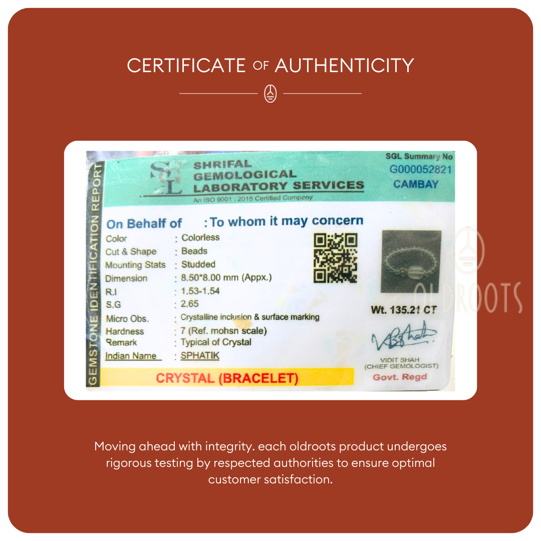 Adorn yourself with the purity of our Natural Clear Quartz (Sphatik) Bracelet. Crafted from clear quartz, this bracelet embodies the essence of positive energy and spiritual growth. Each bead amplifies the healing vibrations of clear quartz, promoting clarity of mind and enhancing your connection to higher realms. Wear this bracelet as a symbol of purity, allowing the crystal’s energy to cleanse your aura and elevate your spiritual journey. Let the timeless beauty of clear quartz become a talisman for inner harmony and enlightenment.