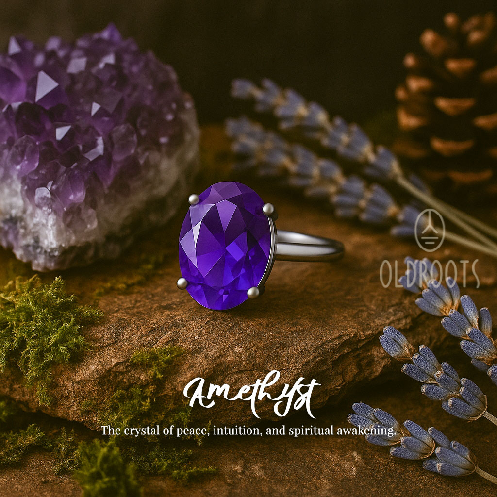 This ring is built around a high-clarity natural amethyst with a rich purple tone that stands out instantly. The gemstone is precision-cut with multiple facets for maximum shine and depth. It’s secured in a durable four-prong setting and paired with a smooth, polished band that gives the ring a modern, premium look.