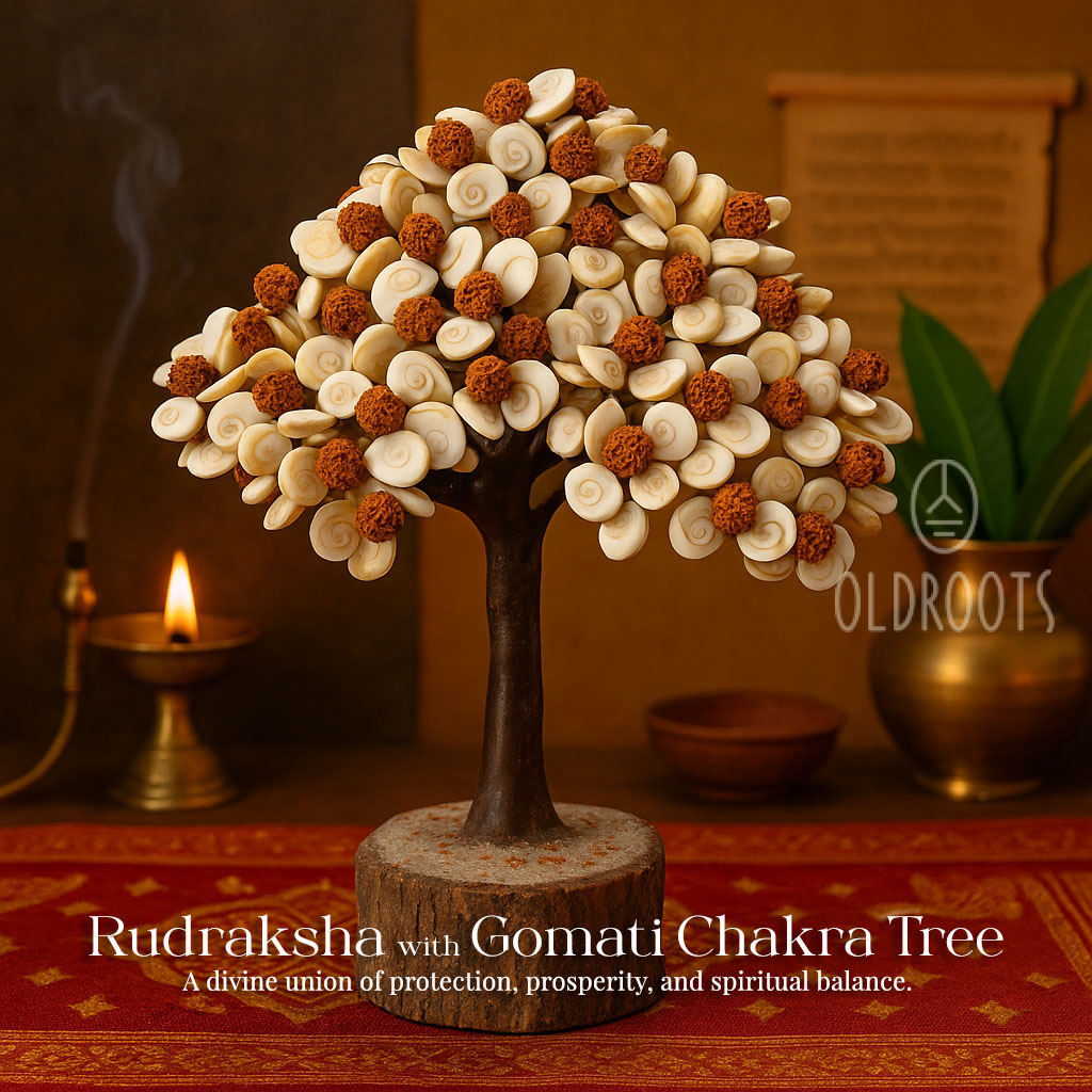 Invoke divine blessings with the Rudraksha with Gomati Chakra Tree, a powerful union of two sacred elements in Vedic tradition. The Rudraksha beads, known as “Tears of Lord Shiva,” symbolize protection, spiritual awakening, and inner strength, while the Gomati Chakra represents prosperity, harmony, and divine grace.
