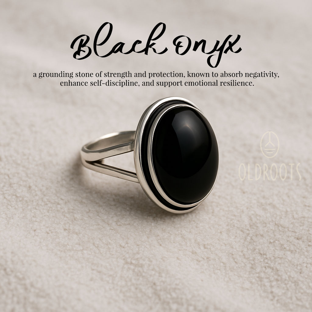 The Oval-Shaped Black Oynx Alloy Ring is a striking piece of jewelry featuring a polished black onyx cabochon set in a sleek silver-toned alloy band, embodying strength and protective energy. Known as a grounding stone that absorbs negativity, enhances self-discipline, and fosters emotional resilience, this ring serves as a daily talisman for balance and inner fortitude, perfect for those seeking subtle spiritual support in everyday wear.