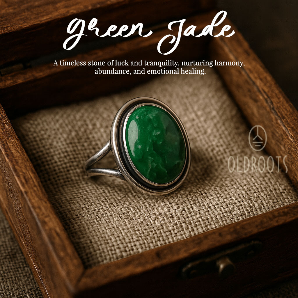 The Oval-Shaped Green Jade Alloy Ring showcases a vibrant green jade cabochon set in a sleek silver-toned alloy band, embodying a timeless stone of luck and tranquility. Known for nurturing harmony, abundance, and emotional healing, this ring serves as a meaningful accessory that promotes balance and well-being, making it a cherished piece for everyday wear or special occasions.