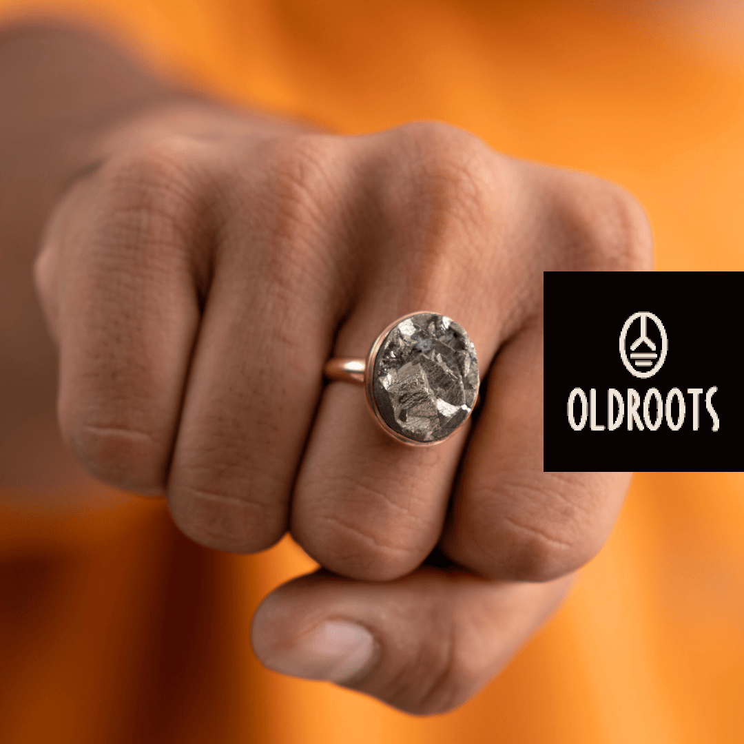 Oval-Shaped Raw Pyrite Alloy Ring